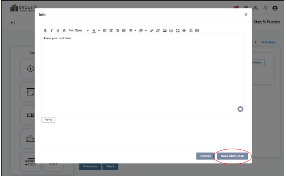 Click on the edit button to open the pop-up window where you can edit your questions and options. When you are done, click Save and Close to save and close the pop-up window.