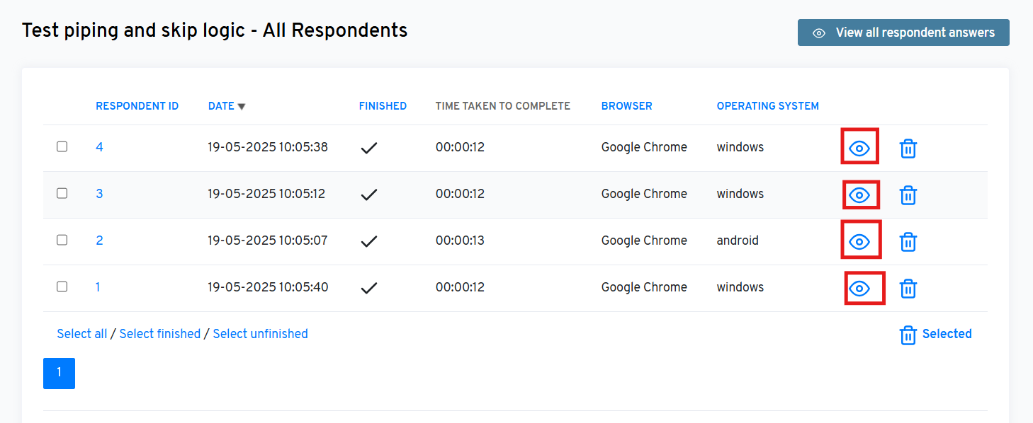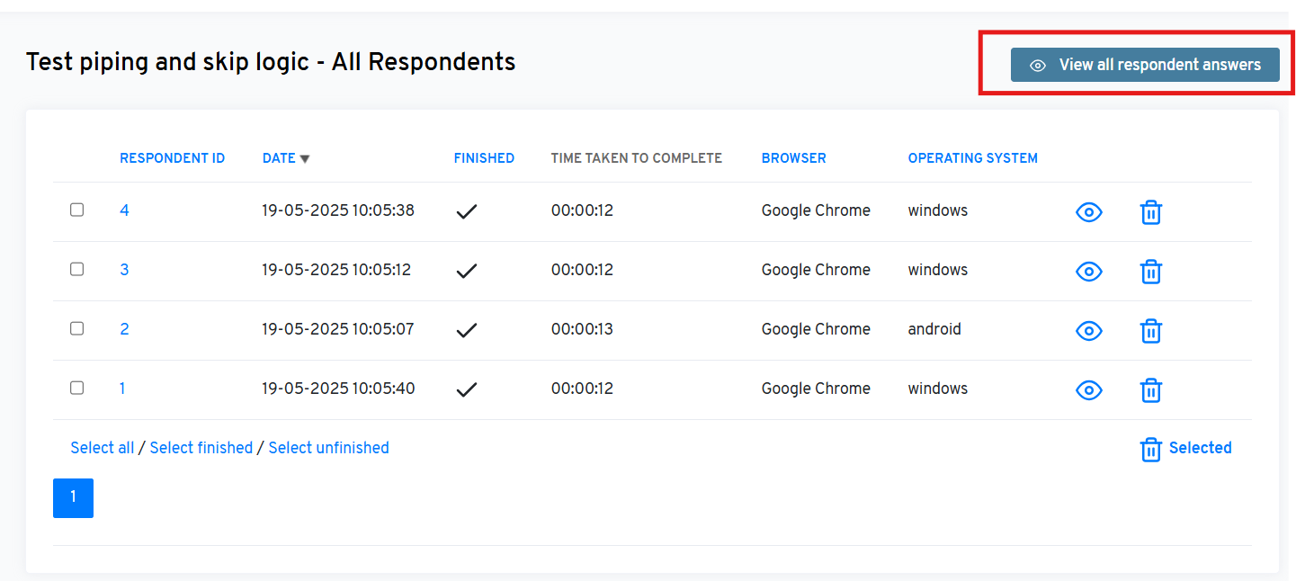 - You will now see a complete overview of all respondents. Click on the “View” icon of a respondent to view their answer.