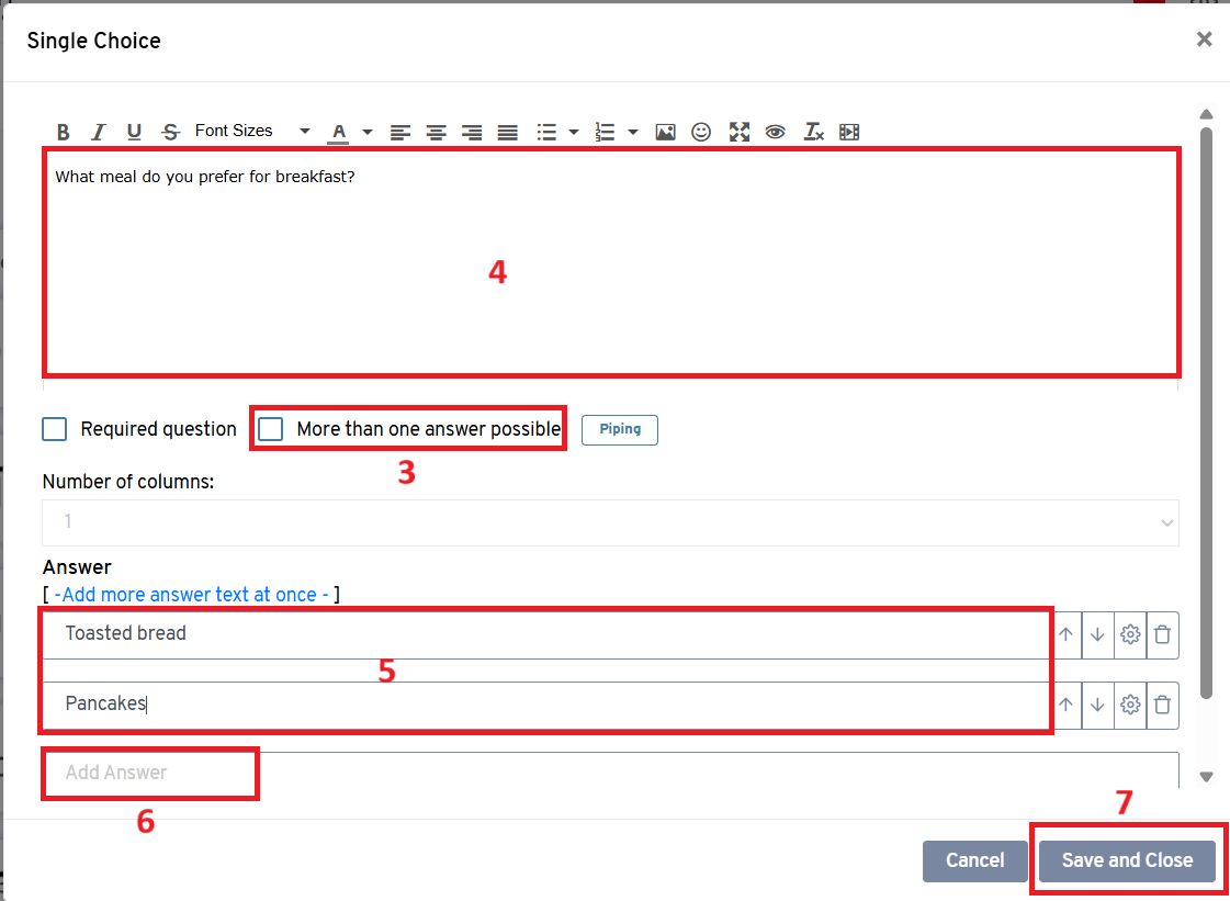 6. Click on “Add Answer” to add more answer options