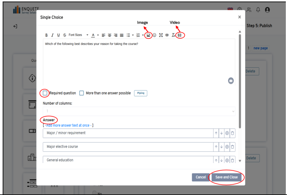 - Add or edit your questions using the editor. You can use all the editor options including adding images and videos to your questions.