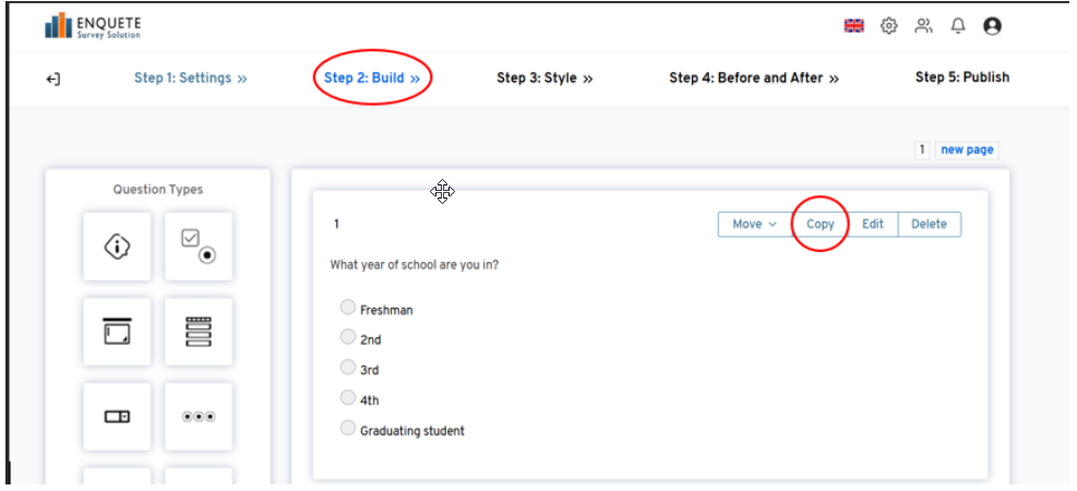 You can copy or duplicate a question you already created in your online survey in order to save time. This can be useful when you intend to create questions that are very similar.