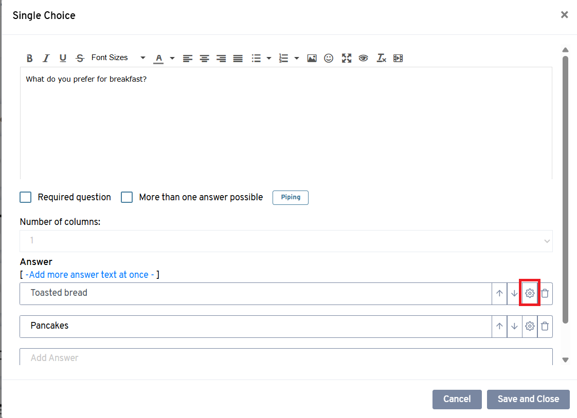 2. Click on the settings icon next to the answer option to open its settings