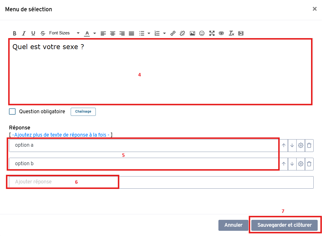 Cliquez sur "Ajouter une réponse" pour ajouter d'autres options de réponse.