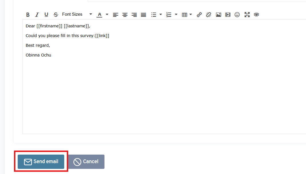 Mettez à jour le contenu et la configuration de votre message d’invitation, puis cliquez sur « Envoyer l’e-mail ».
