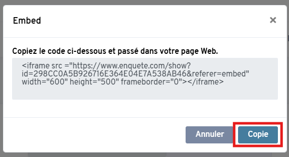 Vous pouvez ajouter votre enquête directement à votre page web en utilisant une balise iframe. Voici les étapes à suivre pour intégrer une enquête dans votre propre site web.