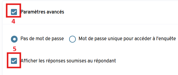 Cochez la case « Afficher les réponses soumises au répondant ».