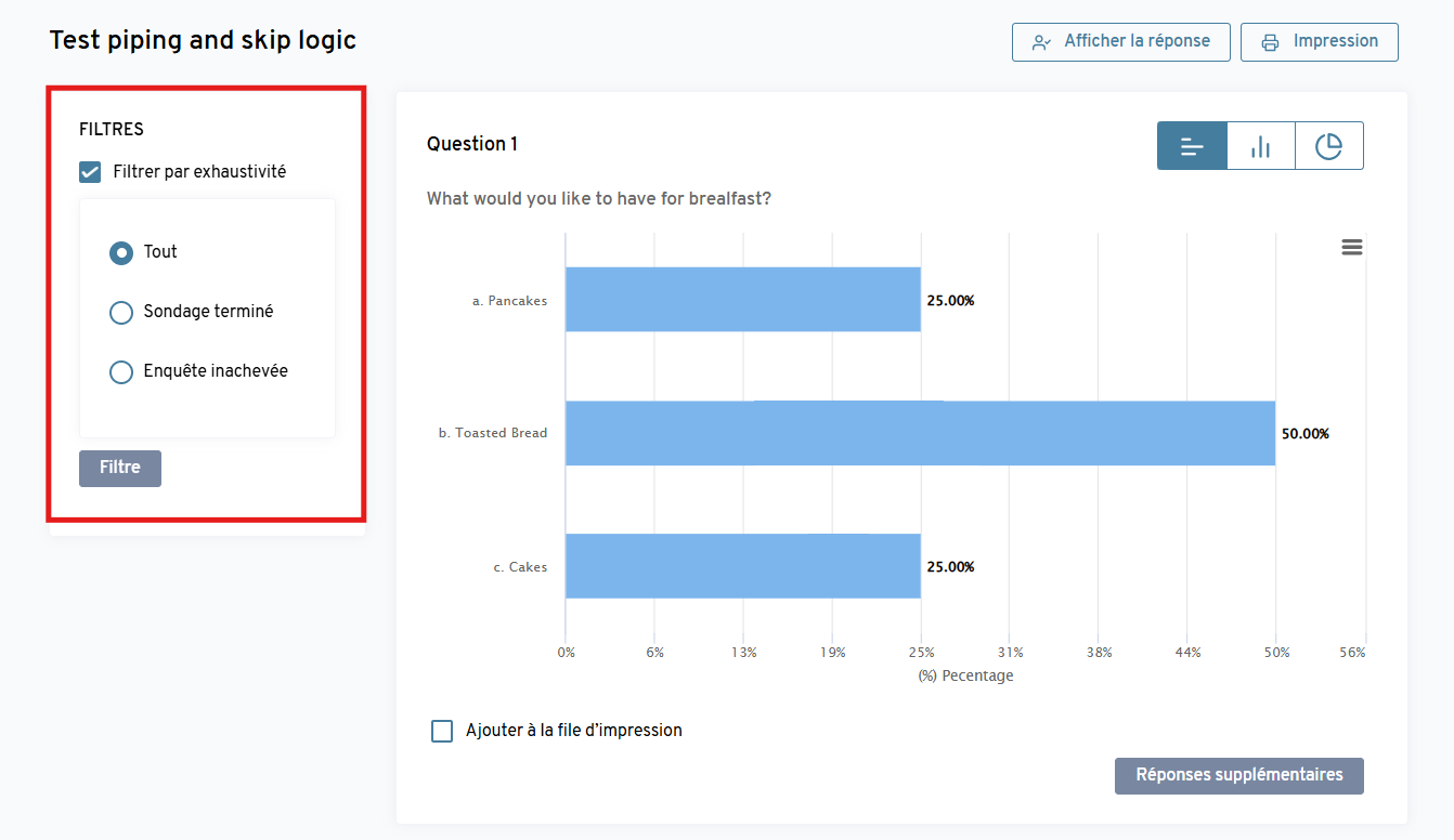 “Sondage non complété” pour afficher uniquement les graphiques des sondages non complétés,