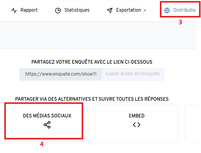 Cliquez sur l’icône du réseau social de votre choix pour partager le lien de l’enquête sur la plateforme sélectionnée.