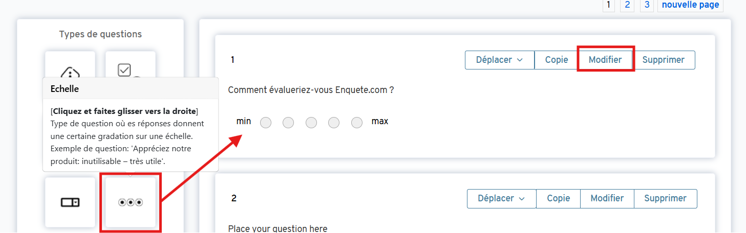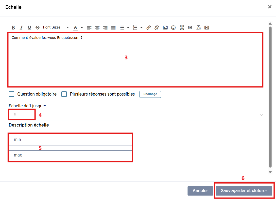 Une question d'évaluation permet aux répondants d'évaluer une question sur une échelle. Le nombre de choix sur l'échelle est défini par défaut à 5, mais vous pouvez choisir jusqu'à 11.