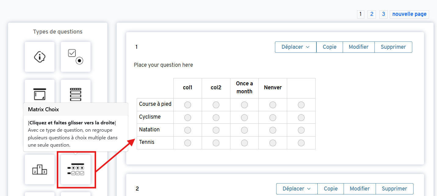 Comment créer une question matricielle ?