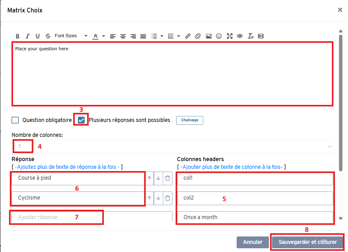Sélectionnez le nombre de colonnes souhaité pour votre question matricielle.